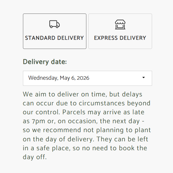 At checkout, choose a delivery date that works for you. You can order now and have your border delivered when you're ready to plant—perfect for planning ahead.