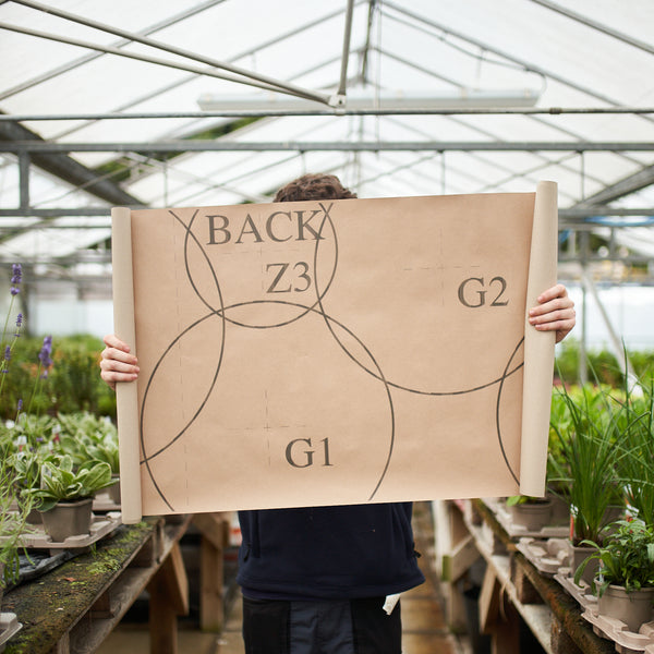 Every border comes with a paper template that shows you exactly where each plant should go. Simply lay it out, cut the crosses, and plant through the holes for perfect spacing and design consistency.